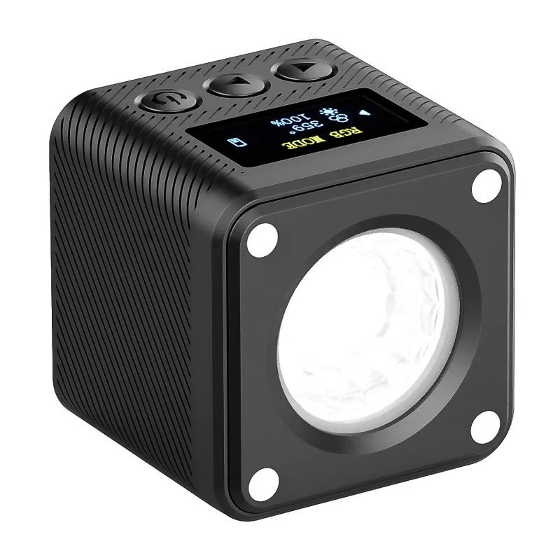 Ulanzi L2 — RGB ir miniatūra LED lampa, kas sver tikpat, cik…. viena ola. Varat to ērti ievietot kabatā vai mazākajā mugursomas nodalījumā. Tā būs ideāla izvēle tiem, kas uzņem mikro un makro fotogrāfijas vai filmas. Varat arī to izmantot, lai apgaismotu seju video emuāru veidošanas vai videokonferences laikā. Ierīce piedāvā iespēju mainīt gaismas krāsu HSI krāsu telpā un 11 iepriekš iestatītus specefektus. Tas ir aprīkots ar magnētu un 1/4″ iekšējo vītni. Zibspuldzes komplektācijā ietilpst virkne gaismas modifikatoru (izkliedētājs, šūnveida šūna, straume un vārti) un aukstumkurpes adapteris.