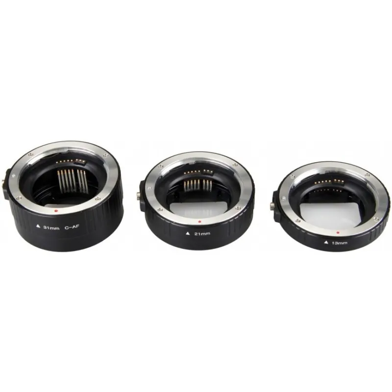 Pagarinājuma gredzenu komplektā Kenko Auto Extension Tube Set DG ietilpst trīs dažāda garuma gredzeni: 13 mm, 21 mm un 31 mm, ko var izmantot atsevišķi vai kombinācijā vienu ar otru, lai iegūtu vēlamo palielinājumu. Tie ir savietojami ar Canon EF un EFS objektīviem.