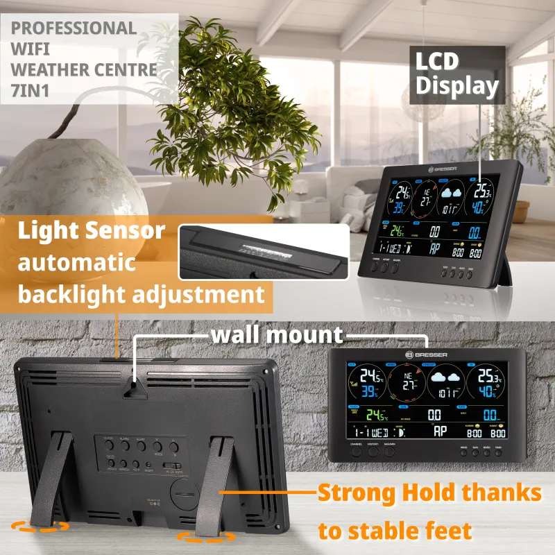 Support a wireless 7-in-1 sensor with 150 m transmission range (included)