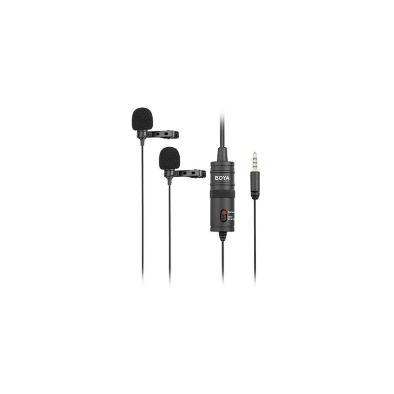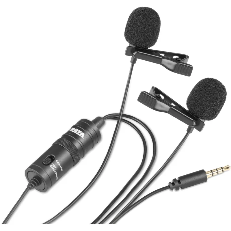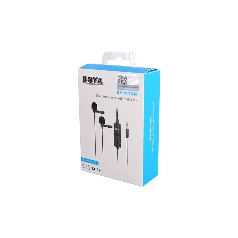 BY-M1DM no Boya ir divkāršs mikrofons, kas piemērots viedtālruņiem un (DSLR) kamerām. Pateicoties četru metru kabeļa garumam, jums ir pietiekama pārvietošanās brīvība. BY-M1DM īpašā iezīme ir tā, ka tā ir piemērota gan viedtālruņiem, gan kamerām. Ar īpašu pogu jūs varat pārslēgties starp šiem diviem režīmiem. Izmantojot BY-M1DM ar kameru, LR44 akumulators dara savu darbu; tas piešķir mikrofoniem to spēku. Iekļauts 3,5–6,3 mm adapteris, lai savienotu BY-M1DM ar profesionālākām kamerām.