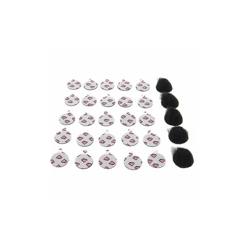Rycote melnajos pārklājumos Advanced, vējtveros un līmējošajos stiprinājumos Lavalier mikrofoniem ietilpst pieci 1" kažokādas diski un divdesmit pieci 0,9" apaļie uzlīmes. Šis komplekts ir īpaši izstrādāts lietošanai ar maziem personīgajiem mikrofoniem vējainos āra apstākļos. Izmantojiet uzlīmes, lai piestiprinātu lavalier mikrofonu pie ādas vai apģērba. Pārsegi ir izgatavoti no kažokādas vējrādītāja, ko var piestiprināt lav mikrofona virspusē, nodrošinot lielisku aizsardzību pret vēja radīto troksni. Lielāka izmēra (1") kažokādas pārklājs ir izstrādāts tā, lai atbilstu DPA pārsegiem.