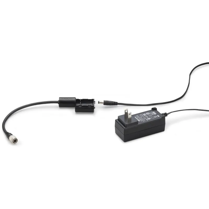 The DHC-1 DC to Hirose Power Cable from Zoom connects to a Zoom AD-19 power adapter, allowing you to provide AC/DC power to your Zoom F8 or F4 multitrack field recorder as an alternative to battery power.