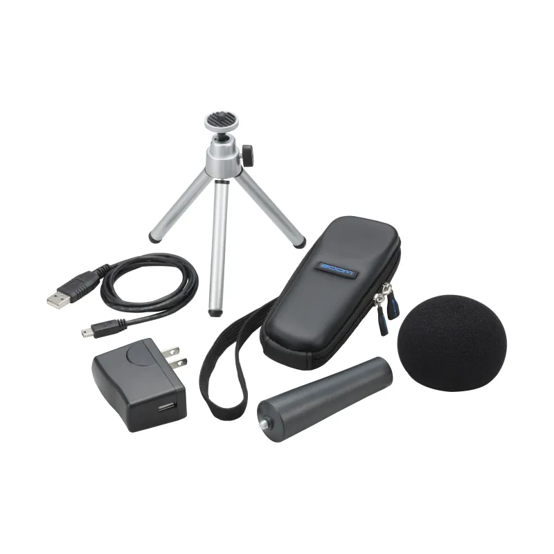 The Zoom APH-1n is an accessory pack for the Zoom H1n. It includes a windscreen for the built-in microphones, as well as the AD-17 AC adapter, a USB cable, a tripod stand, a padded shell case for the recorder, and an MA-2 tripod-to-mic stand adapter.