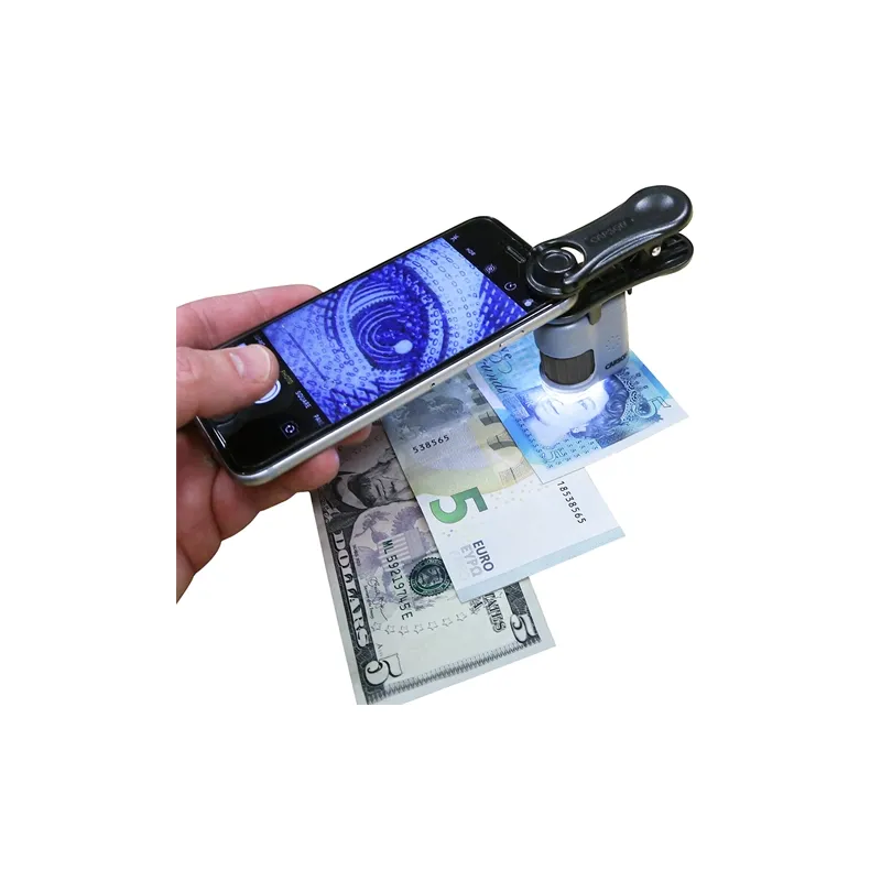 With the Carson MicroMini 20x on your keychain, your pocket microscope is always within reach. Place the microscope above the object and turn the focus ring to get a sharp image.