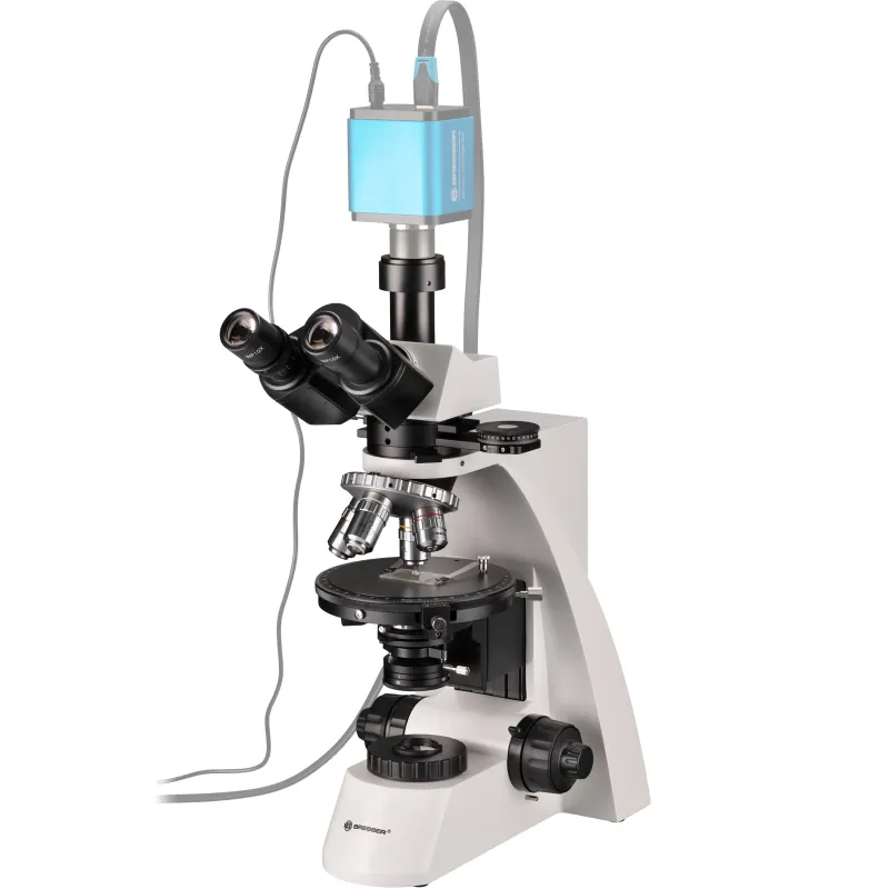 Atšķirībā no parastās gaismas polarizētajai gaismai ir vēlama gaismas viļņu vibrācijas plakne. Polarizētā gaisma ļauj "jaunā gaismā" ieraudzīt anizotropus objektus, kuru novērojamās īpašības ir atkarīgas no virziena: ne tikai kristāli, bet arī dzīvnieku mati, spalvas, muskuļi, nervu šķiedras un augu šūnu sieniņas, kuru biomolekulām ir vēlamais virziens, tagad parāda struktūras, kas parastajā spilgtā lauka attēlā bija apslēptas. Attēliem, kas iegūti ar polarizētu gaismu, bieži vien ir raksturīgs fantastisks krāsojums. Polarizācijas mikroskopus īpaši izmanto mineraloģijā, ģeoloģijā, bioloģijā un medicīnā. Lai kontrolēti mainītu objekta virzienu, Science MPO 401 ir apaļš, centrā regulējams un pilnībā grozāms objekta statīvs ar grādu skalu. Apgaismojuma un novērošanas bloks ietver, piemēram, halogēna spuldzes lampu (20 W) ar dimmeri, lauka diafragmu (ko izmanto, lai panāktu Kēlera apgaismojumu), 360° rotējošu polarizatoru (polarizētas gaismas iegūšanai), objektīvu centrēšanas instrumentus un analizatora stiprinājumu (polarizētas gaismas analīzei). Analizatora stiprinājums ir paredzēts 360° leņķī grozāmā analizatora un pēc izvēles pieejamo slīdņu (Bertrāna lēca konoskopijai; kvarca ķīlis, lambda plāksne un lambda/4 plāksne, ko izmanto, lai iegūtu īpašus krāsu efektus) uzņemšanai. Plaša lauka okulāri (WF10x), kas arī ir pieejami pēc izvēles, ir novietoti pie trinokulārās galvas ar 30° slīpumu. Tiem ir regulējams acu reljefs, kā arī dioptrijas regulēšana. Ar tiem redzamie attēli ir spilgti, patiesi krāsaini, asi un detalizēti. Papildus iepriekš minētajiem slīdņiem un okulāriem MPO 401 piederumu komplektā ir arī dalāmie okulāri (WF10x), Abes kondensators ar diafragmu, speciālie polarizācijas objektīvi (4x, 10x, 40x ievelkami, 100x ievelkami ar eļļu), filtri (zili, zemstikla) un imersijas eļļa.