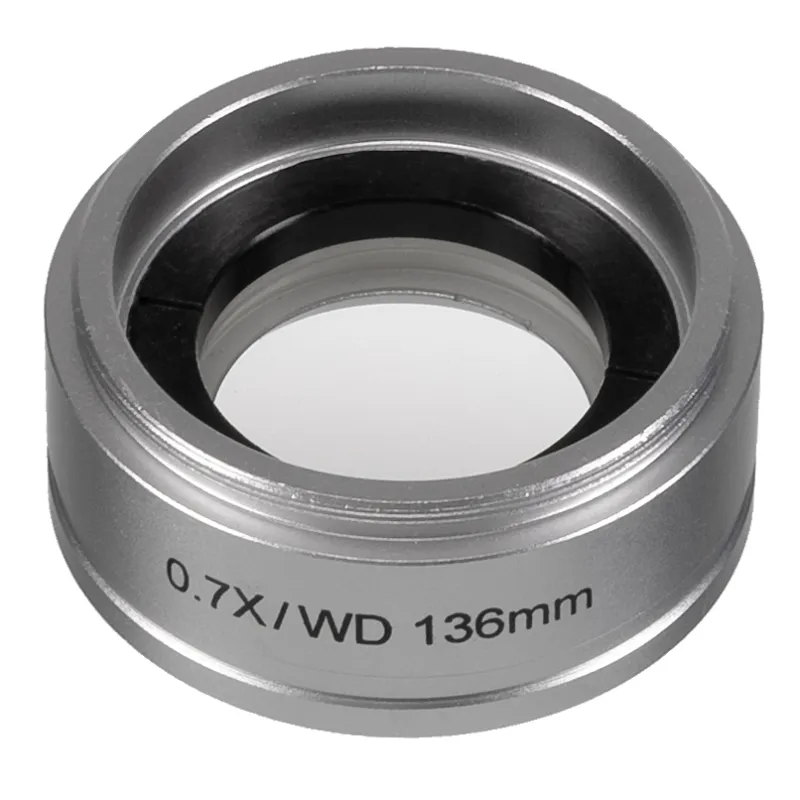 In some applications, it is desirable to decrease the magnification factor. With this 0.7x lens, you can use the Science ETD-201 at magnifications of 5.6 to 35x. . The working distance is increased slightly. This is particularly useful if you need to work under the microscope. A larger and brighter field of view is also useful when using a microscope camera. The working distance is 137 mm.