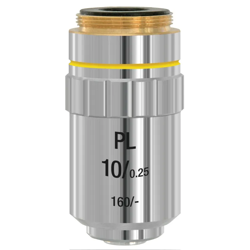 BRESSER plan achromatic objective lens 10x - these DIN objective lenses are processed with the highest quality materials to enhance the image replication. Plan correction minimizes refocus between center and edge of field and is especially useful for imaging.