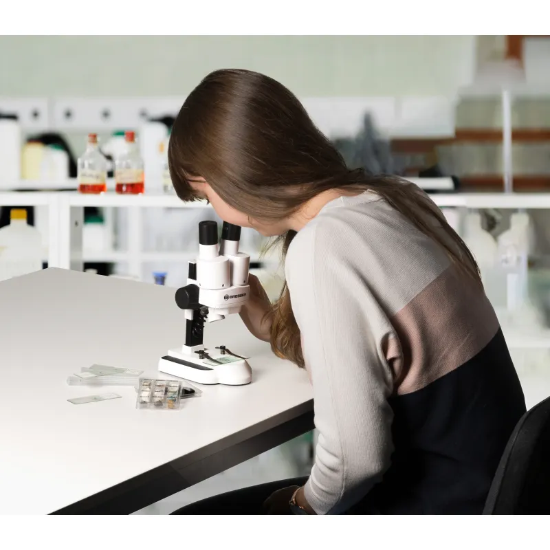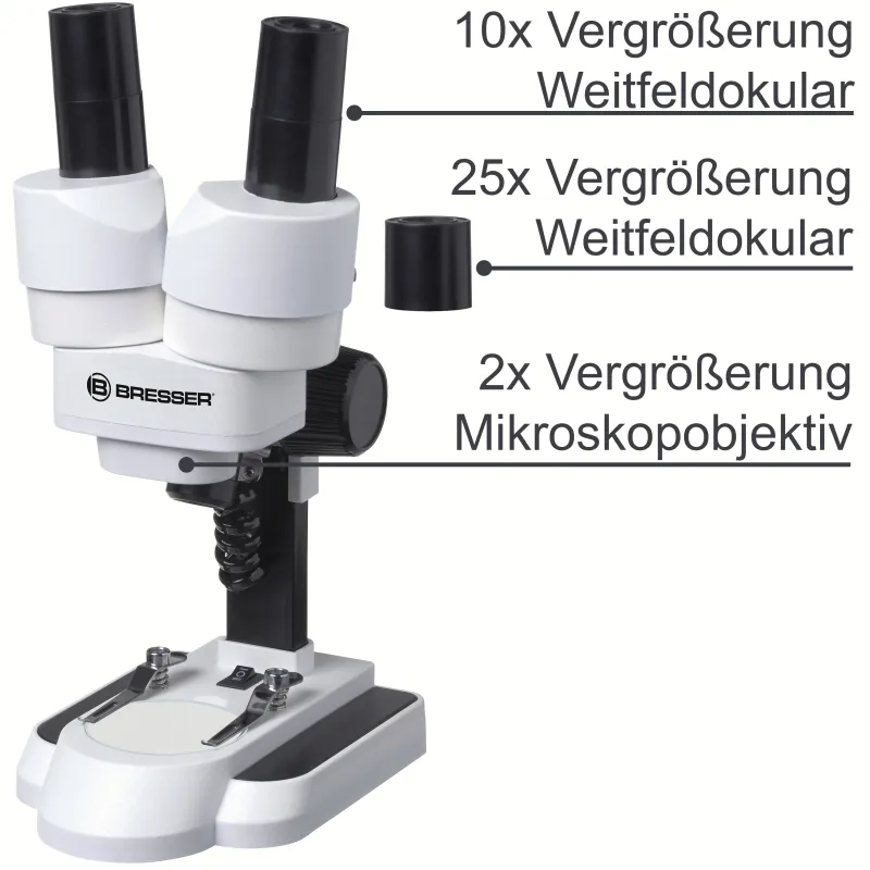 BRESSER JUNIOR - playing the world of optics! Two eyes see more than one. Much of what you find out there, you can zoom up to 20 times with this stereo microscope. Light on! Put on a test and off you go! With this children's microscope you give children much more than just a toy: they promote the scientific work of children and at the same time stimulate the urge to explore. In answer to the questions that make up certain things, children can now use the microscope to explore how the world of the microcosm is constructed: observations of everyday things, such as coins, stones, insects, and specimens that are already included.