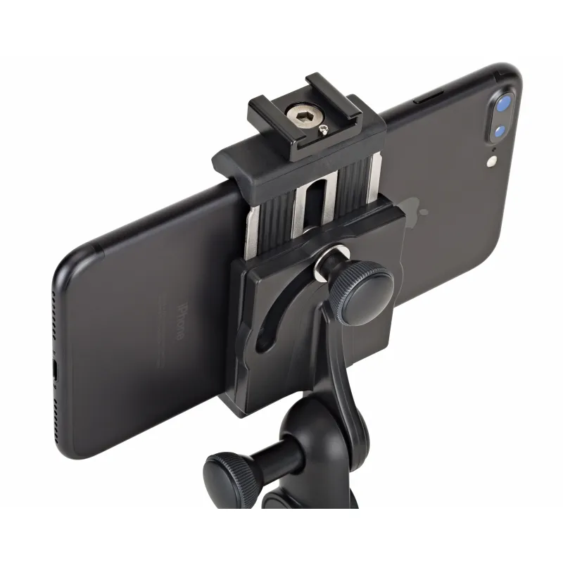 Holds up to plus size phone. Add additional devices like lights and mics via removable Cold Shoe PRO Mount. Additional GorillaPod arm or other ¼”-20-based accessory can be added too.