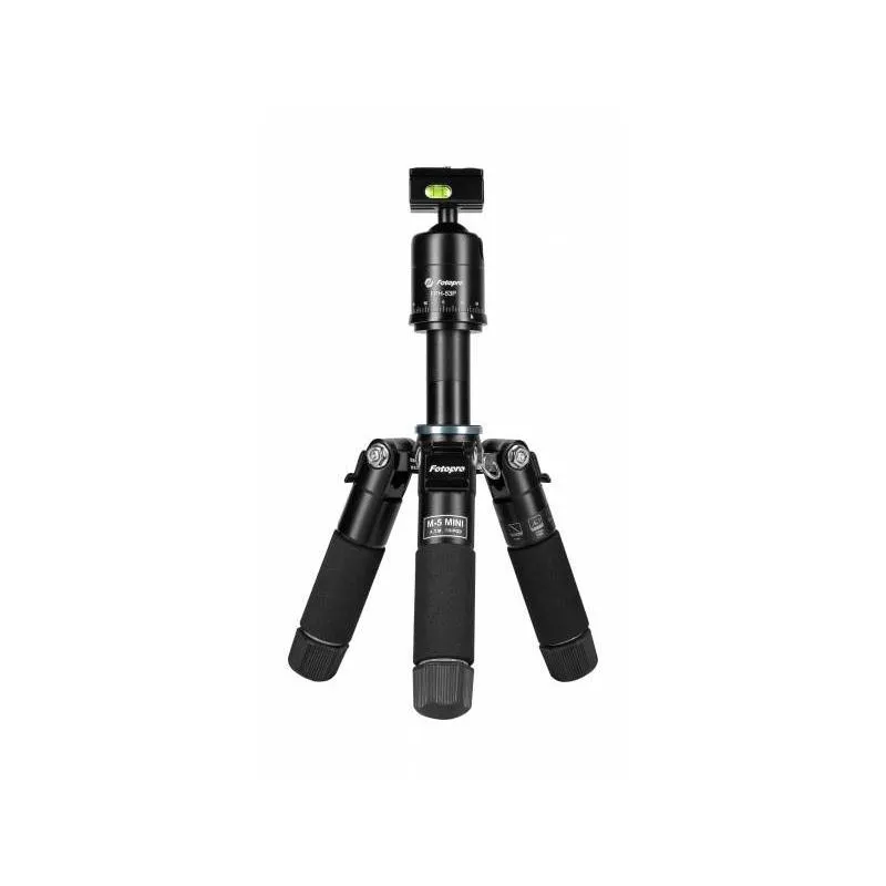 - Statīvs (bez galvas) - modelis M-5 Mini - krāsa: melna - Materiāls: Materiāls: alumīnija The Fotopro M-5 Mini tripod is designed for those looking for highly functional, mobile equipment of the highest quality. It is the ideal choice for photographers - travellers, those using lightweight DSLR or mirrorless cameras and macro photography enthusiasts. Small tripod with big capabilities The M-5 Mini tripod is made from the highest quality aluminium alloy. The design provides high stability with low own weight and offers a load capacity for equipment weighing up to 8kg. The central column can be mounted inverted (upside down), making it easier for macro photography and taking shots from a so-called 'frog's perspective', among other things. It is constructed from two modules. Using just one of them, the minimum working height of the tripod is only 13.7 cm. The M-5 Mini has a three-stage leg tilt system. In addition, they can be folded in reverse to reduce dimensions for transport. The clamps are based on the proprietary Quick Twist Lock System, which makes it quick and easy to set up or fold the tripod. The standard 3/8" thread allows the attachment of any head (with 3/8" thread). The tripod is perfect for use with SLR, mirrorless, compact cameras and camcorders. A convenient pouch is included to attach the tripod to a belt or bag. Ball head The M-5 Mini tripod is equipped with the FPH-53P ball head with Arca Swiss standard quick-mount plate. The head has a set of three spirit levels and a quick release lock to prevent accidental unplugging of mounted equipment. There is a 360° scale on the swivel base of the head to facilitate precise panning. Highest quality and guaranteed reliability Thoughtful design, top quality materials and precision workmanship ensure that the product will last for years. In addition, all Fotopro tripods come with a six-year warranty! The Fotopro M-5 Mini tripod is an excellent choice for professionals and advanced amateur photographers expecting top quality workmanship and high mobility. Specifications Stand (without head) model: M-5 Mini colour: black maximum load: 8 kg weight: 0.51 kg maximum working height: 39 cm minimum working height: 5.5 cm height in transport position with head: 15 cm number of leg sections: 5 leg locking type: Quick Twist Lock System head attachment: male thread 3/8" extendable, fold-out central column head model: FPH-53P colour: black fabric: aluminium maximum load: 8 kg weight: 0.27 kg height: 8.2 cm base diameter: 4.3 cm ball diameter: 3 cm Arca Swiss standard quick-mount plate measuring 4.2 x 4 cm with 1/4" hole for tripod thread 3/8" three spirit levels an angle graduation Kit contents Photopro M-5 Mini tripod Photopro FPH-53P ball-head with Arca Swiss standard quick-mount plate bag with hip / shoulder strap key to adjust tripod leg spacing resistance carabiner