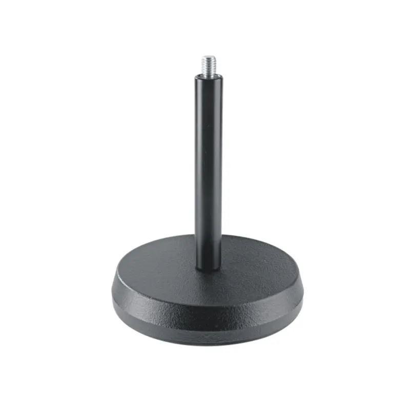 Sound-absorbing cast-iron base with black powder-coated screw-in rod, 3/8" thread.