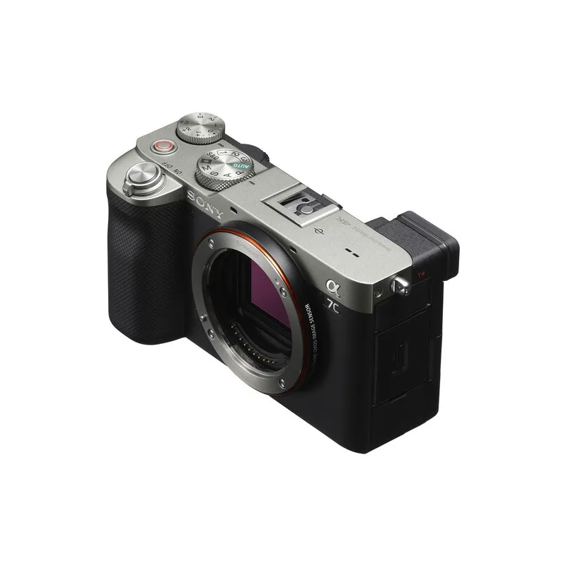 Sudraba Sony Alpha a7C apvieno pilna kadra sensora kvalitāti ar īpaši pārnēsājamu un elegantu korpusa dizainu. Ar 24.2MP Exmor R BSI CMOS sensoru, a7C piedāvā hibrīdspējas, kas atbilst gan foto, gan video ierakstu vajadzībām, kā arī formu ikdienas lietošanai.