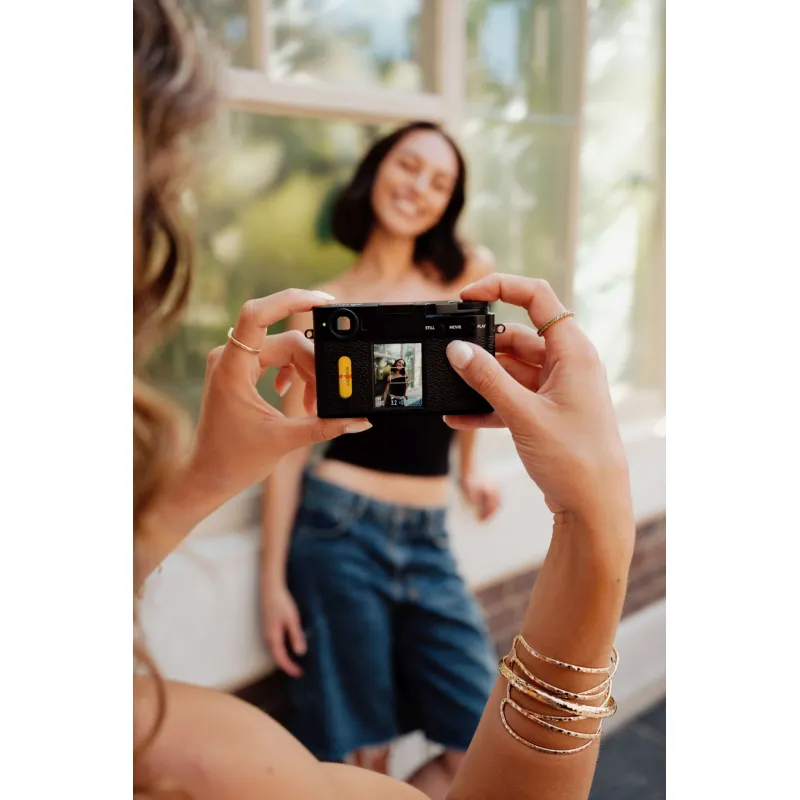 X half uzņem fotogrāfijas un videoklipus portreta formātā ar 34 aspektu attiecību, atbalstot radošu fotogrāfiju ar optisko skatu meklētāju un skārienjutīgu monitoru. 2-in-1 funkcija ļauj apvienot divas fotogrāfijas vai videoklipus tieši kamerā.