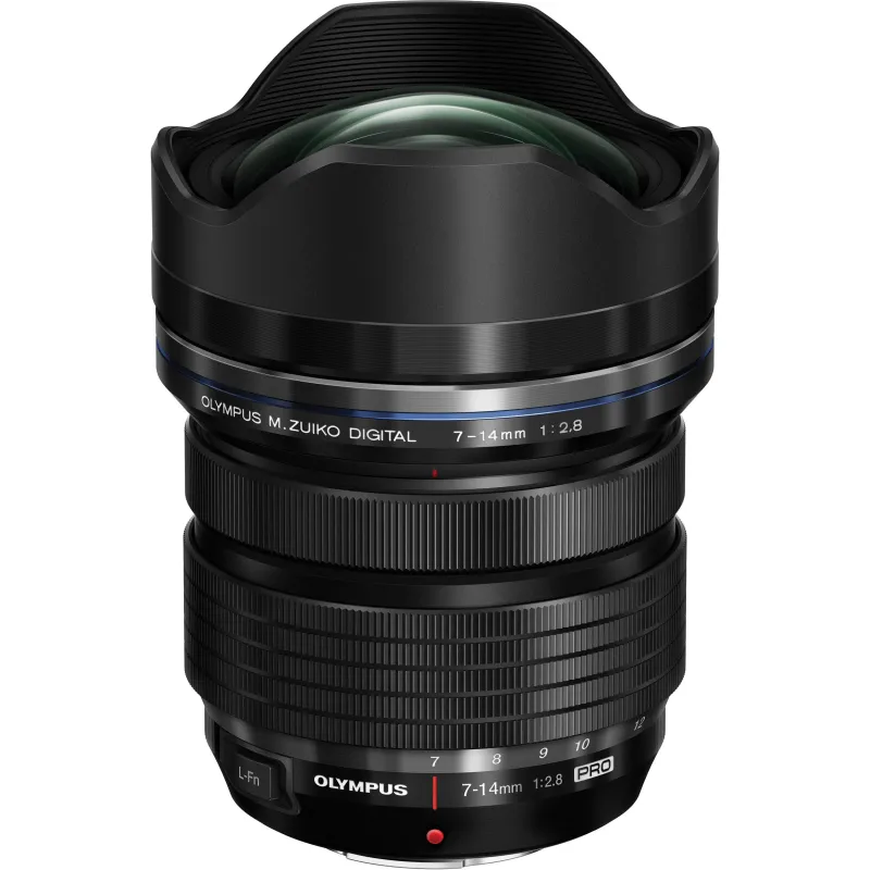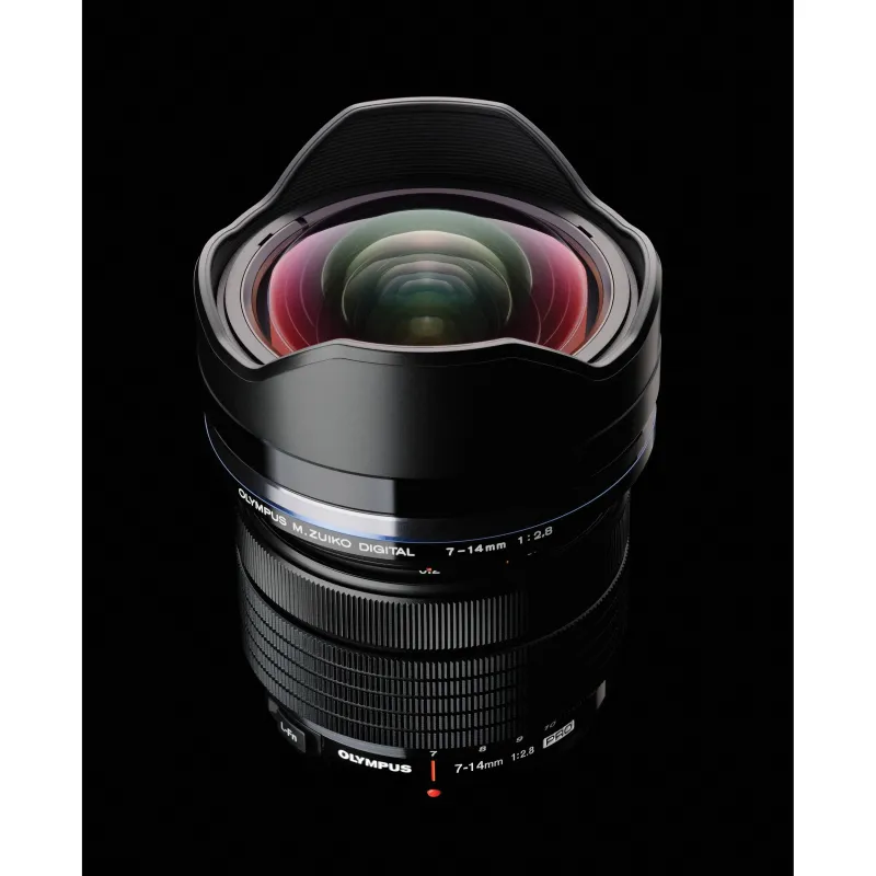 Universāls platleņķa tālummaiņas objektīvs Micro Four Thirds bezspoguļa kamerām, Olympus M.ZUIKO Digital ED 7-14mm f/2.8 PRO obje ktīvs ir 14-28 mm ekvivalenta objektīvs ar konstantu f/2.8 maksimālo f/2.8 aperture, kas nodrošina nemainīgu veiktspēju visā tālummaiņas diapazonā. Konstrukcijā ir iestrādāti dažādi asfēriskie, īpaši zemas dispersijas un augsta refrakcijas indeksa elementi, kas palīdz samazināt hromatiskās aberācijas un izkropļojumus, nodrošinot lielāku skaidrību un asumu. Turklāt elementiem ir uzklāts ZERO pārklājums, lai kontrolētu atspīdumus un spoku veidošanos, tādējādi uzlabojot kontrastu un krāsu precizitāti. Laikapstākļu izturīgs dizains atvieglo lietošanu grūtos apstākļos, savukārt L-Fn poga nodrošina objektīvā balstītu dažādu iestatījumu kontroli. Šis Micro Four Thirds objektīvs ir ātrs, augstas veiktspējas platleņķa tālummaiņas objektīvs, kas apvieno optimizētu optisko izkārtojumu ar izsmalcinātām fiziskām detaļām, lai izceltos dažādos darba apstākļos.