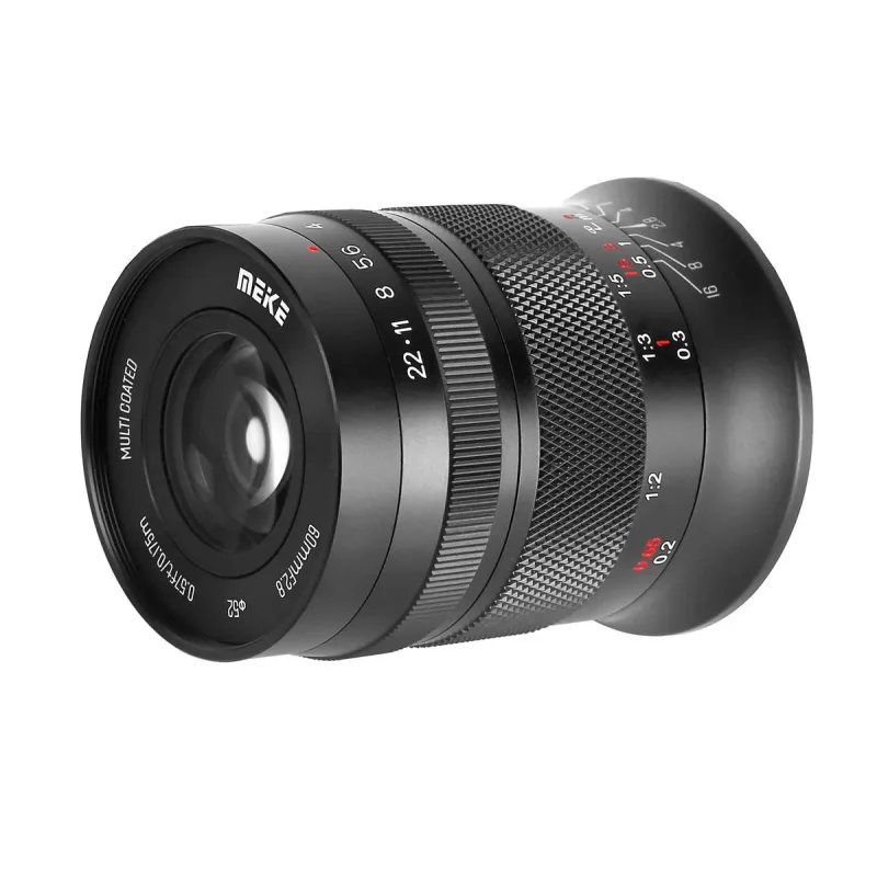 Meike 60mm f/2.8 Macro is a manual focus lens for cameras equipped with APS-C/S35 sensors, and is available with E, X, Z , EF, RF, and MFT mounts. The lens offers a minimum focusing distance of 0.175 m, magnification ratio 1:1, lens structure comprised of 11 elements in 8 groups and 9-blade diaphragm. Available since 3/2023.