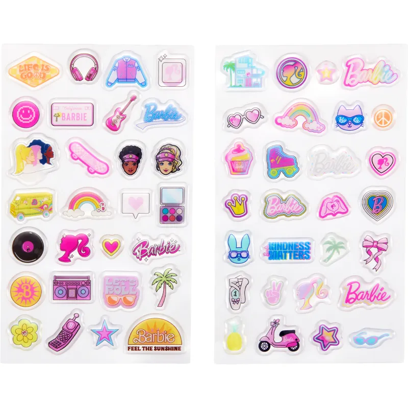 Pilnīga daudzpusība; Pieširiet Barbie mirdzumu savam fotoaparātam, albumam, fotogrāfijām, kartītēm, žurnāliem, plakātiem, skapītim un daudz kam citam! Šīs ikoniskās uzlīmes izgaismo jebkuru virsmu ar tūlītēju Cali vibrāciju.