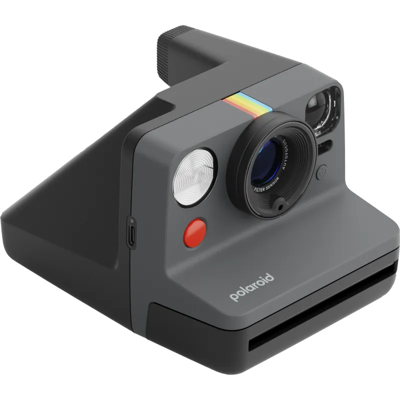 Polaroid Now Gen 3 Bundle, black ir klasiskā analoga instant kamera, optimizēta asāku attēlu uzņemšanai dažādos apgaismojuma apstākļos. Tajā ir iekļauts