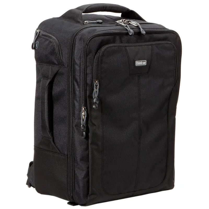 Melnā Lidostas mugursoma no Think Tank ir lielāka nekā Think Tank's Airport Essentials mugursoma, un tās izmērs ir piemērots profesionāla izmēram DSLR, 4–6 standarta tālummaiņas, jūsu iPad un 15 collu klēpjdators. Šī soma ir papildu vieta sniedz iespēju paņemt līdzi kameras korpusam pievienoto 400 mm f/2.8 vai jūsu 500 mm f/4 nav pievienots. Jūsu aprīkojums ir ievietots komplektā iekļautajā polsterētājā sadalītājus jebkurā izvēlētā konfigurācijā, kamēr jūsu datori ir droši ievietoti savā atsevišķā, rāvējslēdzēja aizslēdzamā nodalījumā.