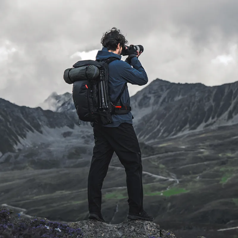 Šī mugursoma ir izstrādāta, lai uzglabātu drēbes, kameras, dronus un portatīvos datorus, ar īpašām kabatām akumulatoriem un piederumiem, nodrošinot, ka viss ir viegli pieejams.