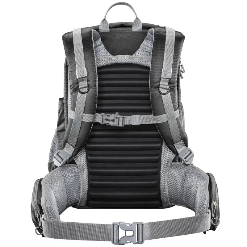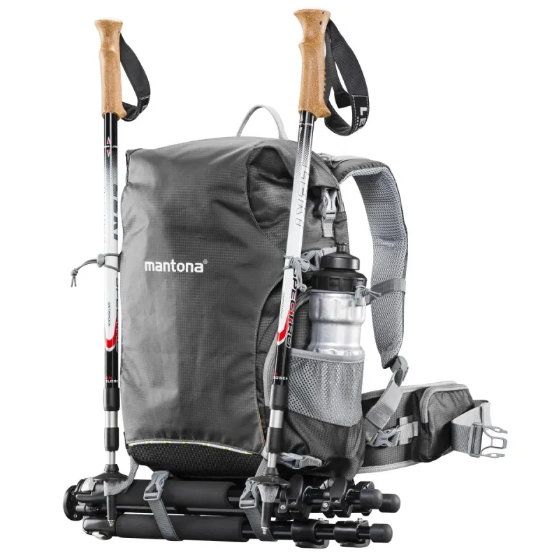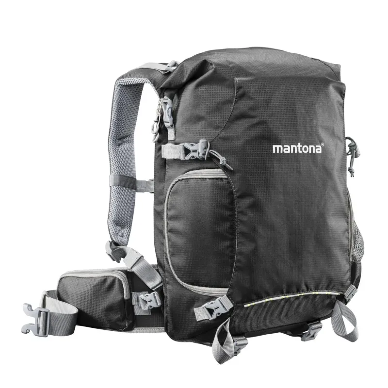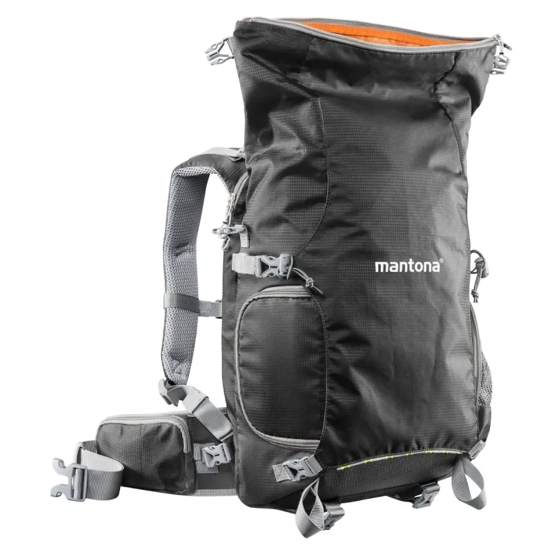 The mantona ElementsPro 30 camera backpack is a convenient outdoor and camera backpack for a system camera or DSLR camera equipment. It provides sufficient space for 4 lenses plus camera with lens attached and further accessories. With the variety of storage compartments one can conveniently transport his equipment while there is still sufficient space for personal belongings for longer hiking tours or day tours.