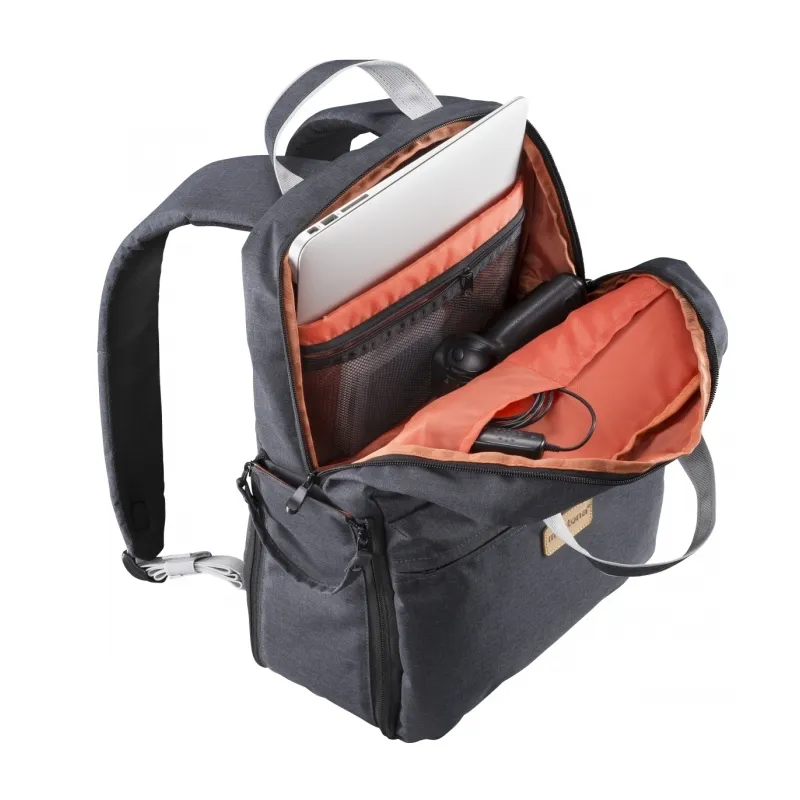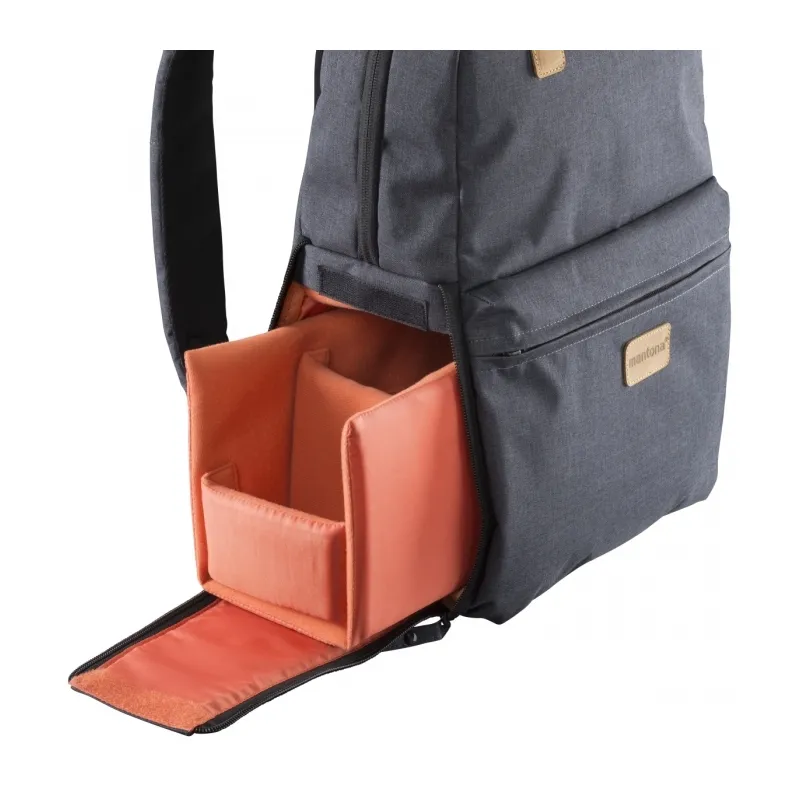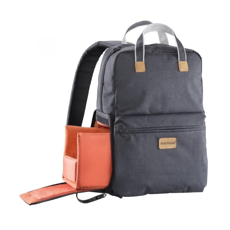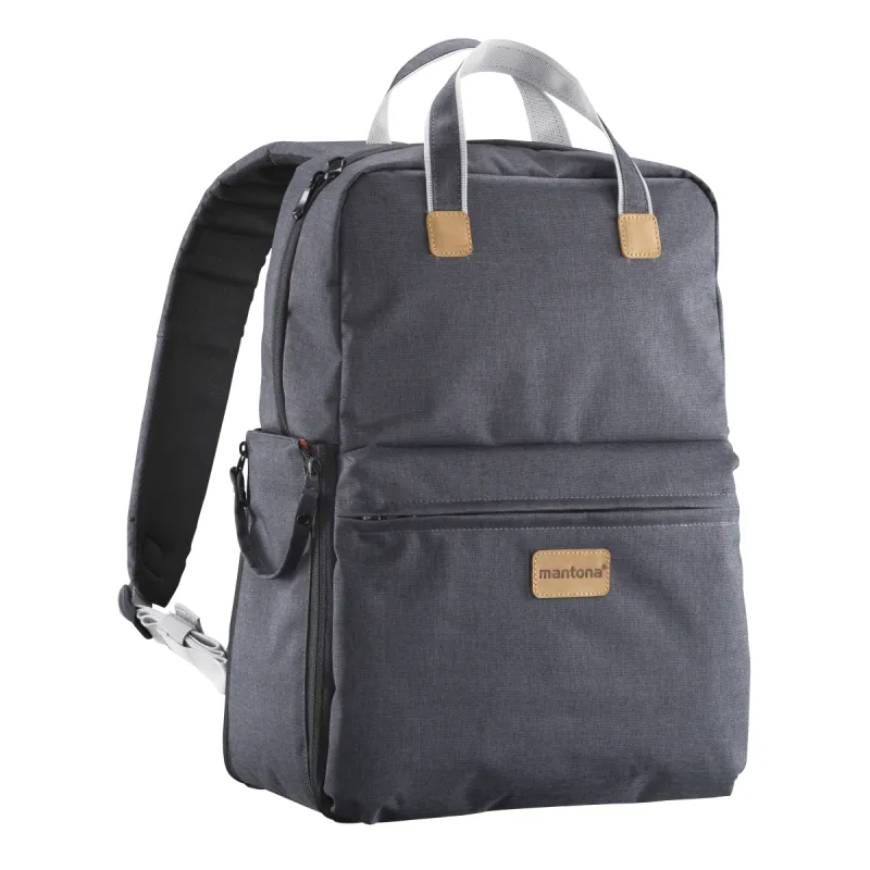 Whether hiking or walking around town: with the mantona photo backpack, you ll look good wherever you go. Fashionable leather appliqués and anthracite Oxford fabric make this item stand out. The lower part of the backpack offers sufficient space and protection for a DSLR camera with lens, two additional lenses and flash. In the upper part, there is room for personal equipment. The backpack can also be comfortably used as a bag.