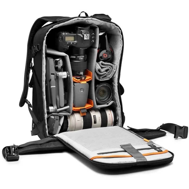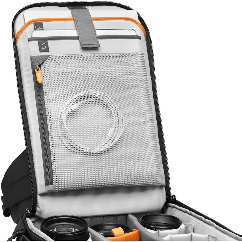 Uzlabotie 10 mm YKK® rāvējslēdzēji nodrošina vienmērīgāks ceļš, savukārt priekšējie veidotie EVA buferi nodrošina lielāku drošību vērtīgam aprīkojumam, kad soma ir nolaista. All Weather AW Cover™ aizsargā aprīkojumu no lietus, sniega, putekļiem un smiltīm. Ievietojiet savā DSLR vai bezspoguļa kamerā ar portreta rokturi ar objektīviem vai kompaktu dronu, kā arī kompakto statīvu, 15 collu klēpjdatoru un 10 collu planšetdatoru. Iekļauts priekšējais uzglabāšanas panelis un noņemams, polsterēts piederumu maciņš.