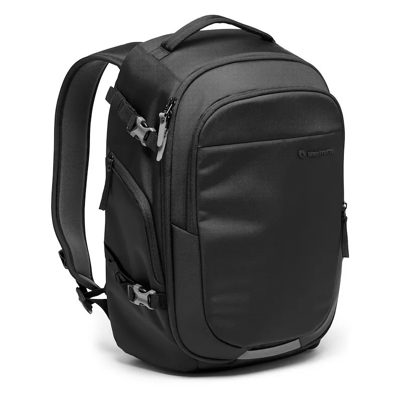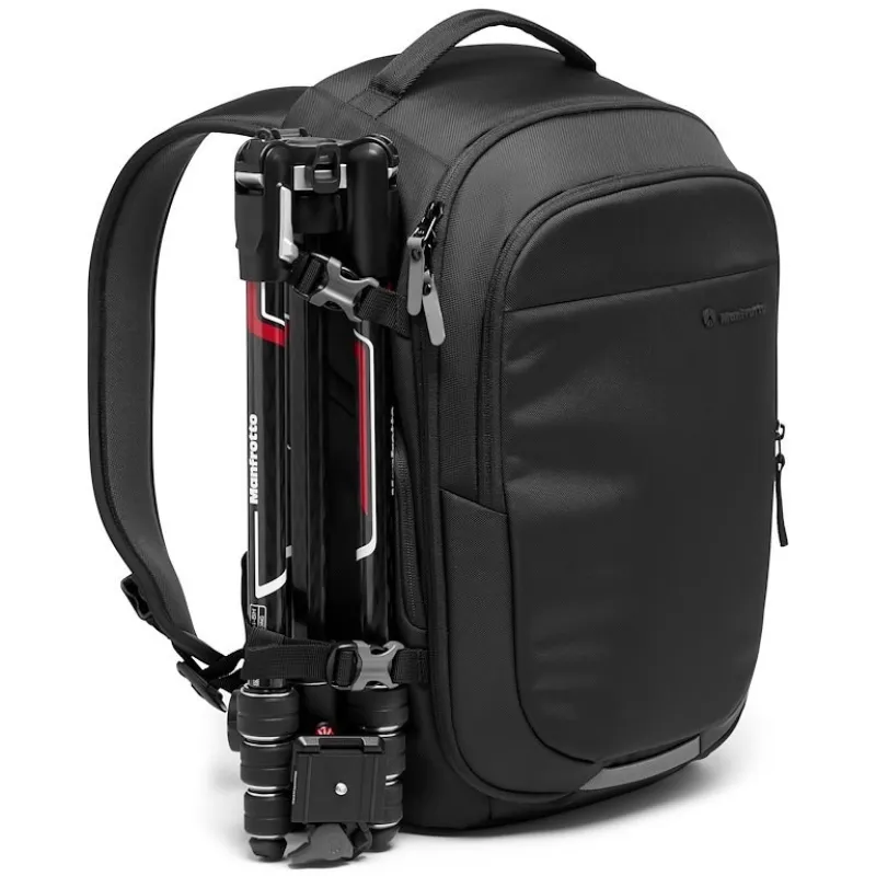 Kompakta un funkcionāla kameras un klēpjdatora mugursoma, kas pilnībā paredzēta kameras aprīkojumam. Manfrotto Advanced Gear mugursoma M III DSLR un CSC ir novatoriska soma, kurā var dāsni uzglabāt un pārnēsāt kameras un klēpjdatora piederumus, taču tā joprojām ir viegla, kompakta un viegli pārnēsājama. Tajā var droši uzglabāt DSLR ar pievienotu 70–200 mm f/2,8 objektīvu, kā arī 4 papildu objektīvus, vai arī to var izmantot vienlīdz labi, lai nēsātu pilna kadra CSC kameru ar pievienotu 70-200/4 objektīvu un 2-3 papildu objektīvus, kā arī DJI Mavic. Air 2 komplekts. Tajā ir iekļauta īpaša 15 collu polsterēta klēpjdatora kabata, kas ir viegli sasniedzama, atrodoties ceļā.