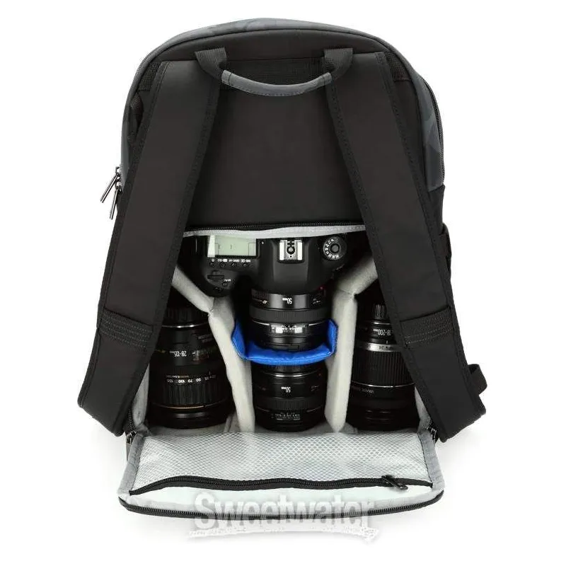 Ar Benro Tourist 200 kameras somu nēsājiet savu vērtīgo kameru ar stilu un uzlabotu aizsardzību. Ērti uzglabājiet kameras, objektīvus, statīvus un strāvas kabeļus — to visu vienlaikus. Izmantojot divus galvenos nodalījumus, kas atdalīti ar noņemamiem putuplasta moduļu sadalītājiem, jūs varat izveidot mugursomas kontūru atbilstoši vēlamajām specifikācijām, lai tā atbilstu visiem jūsu piederumiem; sadalītāju noņemšana ļauj uzglabāt klēpjdatorus līdz 15 collām. Ūdensizturīgais ārējais audums nodrošina aizsardzību pret lielāko daļu laika apstākļu. Galvenā kabata atveras no somas aizmugures, tādējādi aizsargājot jūsu lietas pret jums, vienlaikus pasargājot no zādzībām. Videogrāfu un fotogrāfu guru uzņēmumā Sweetwater mīl Tourist 200 ne tikai tā stilīgā dizaina dēļ, bet arī tāpēc, ka tas patiešām iztur dzīves stingrību uz ceļa!