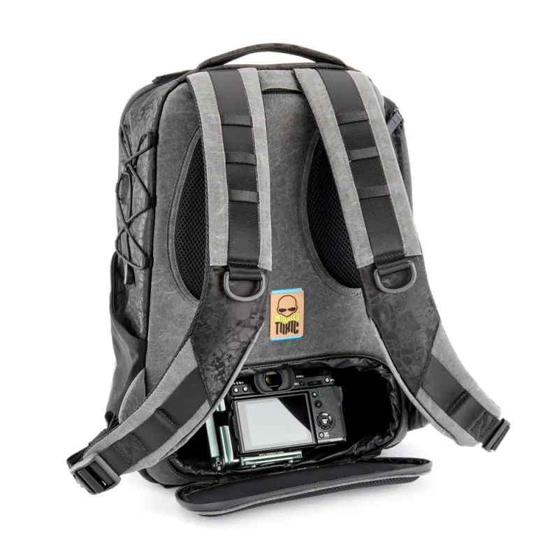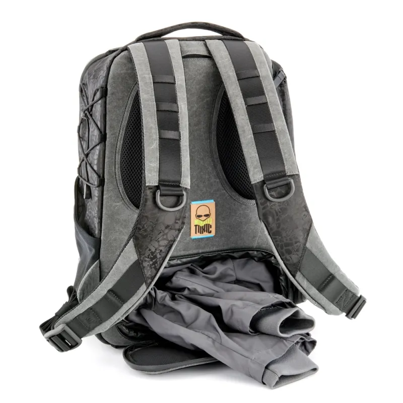 Toxic Valkyrie Camera Backpack M Ūdensizturīga "Frog" kabata Onyx Valkyrie mugursoma ir izgatavota no augstākās kvalitātes audumiem. Auduma gabali ir piegriezti tā, lai tie perfekti saskanētu, kā rezultātā tiek radīti minimāli atkritumi. Uzturiet kārtību Iekšējā organizācija ir veidota pēc fotogrāfu ieceres, tāpēc tajā ir vieta visām nepieciešamajām lietām - papildu objektīviem, zibspuldzēm, filtriem, mikrofoniem, monitoriem, visam ir vieta, un starpsienas ir pārvietojamas, lai pielāgotu jūsu aprīkojumu. Zip Me Up Kā jau no augstākās klases somas var gaidīt, Valkyrie ir YKK vai Aquaguard rāvējslēdzēji visos nodalījumos, kas nodrošina jūsu aprīkojuma drošību. Tur ir pat slepena kabata, kurā varat paslēpt naudu vai pasi. Komforts ir karalis Aizmugurējā daļā ir 3punktu gaisa plūsmas muguras atbalsta sistēma ar polsterētiem jostasvietas un lāpstiņas spilventiņiem, kas veidota tā, lai gaiss brīvi plūstu ap muguru un caur gaisa sietu, saglabājot vēsumu garajos pārgājienos. Plecu siksnas ir veidotas tā, lai pielāgotos visām ķermeņa formām un izmēriem, un tām ir biezi, ērti polsterējumi ar gaisa sietu. Tām ir gan horizontālas, gan vertikālas siksnas piederumu piestiprināšanai. Regulējama krūšu siksna palielina drošību, un ērtībai ir pievienotas noņemamas polsterētas jostasvietas siksnas.
