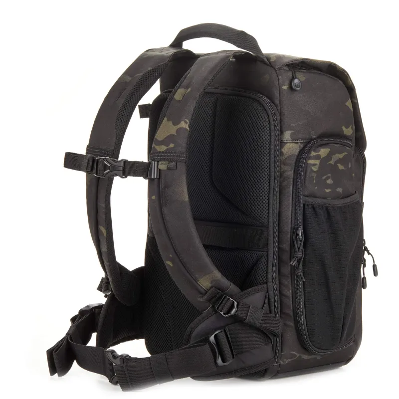 Ārējā MOLLE siksna nodrošina paplašināmību ar Tenba Tools objektīvu kapsulām, akumulatoru maciņiem. un atmiņas karšu makiem, kā arī dažādiem militārajiem standartiem atbilstošiem maciņiem un piederumiem. Tenba Airflow siksnas un automātiski regulējamās Pivot-Fit siksnas ļauj ērti pielāgoties dažāda auguma lietotājiem. Šajā mugursomā ir dubulta sānu piekļuve kamerai, un tajā ir slēpta kabata, kas paredzēta, lai tajā ievietotu personīgo izsekošanas ierīci, piemēram, Apple AirTag vai Tile Bluetooth Tracker.
