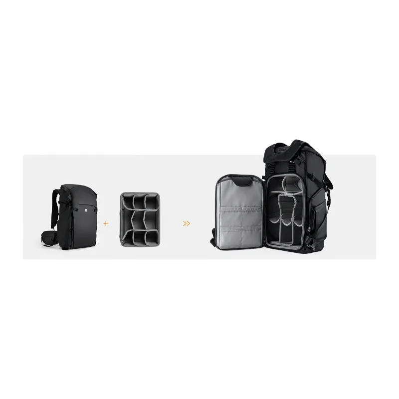 KU0026amp;F Concept Star Wander 04 kameru mugursoma ir izstrādāta elastīgai telpas pārvaldībai visos apstākļos. Iekšpusē jūs atradīsiet profesionālu kameru ielikni ar astoņiem nodalījumiem (4 mazi, 2 vidēji un 2 lieli), kurus varat pārkārtot atbilstoši jūsu specifiskajam aprīkojumam. Tajā viegli var ievietot vairākas kameras, objektīvus, dronu un aksesuārus. Kad ieliktnis, kuru var izmantot neatkarīgi, tiek noņemts, mugursoma pārvēršas par klasisku ikdienas vai ceļojumu somu.