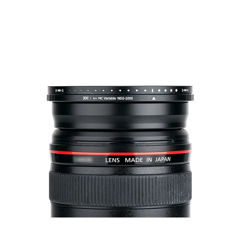 JJC 77mm ND2-ND2000 Variable Neutral Density Filter The JJC F-ND2K series ND2-ND2000 Variable Neutral Density Filter is specially designed for shooting dynamic scenes, such as waterfalls, streams, waves, etc. The frame is made of high quality aluminium alloy and the thickness is about 9mm.