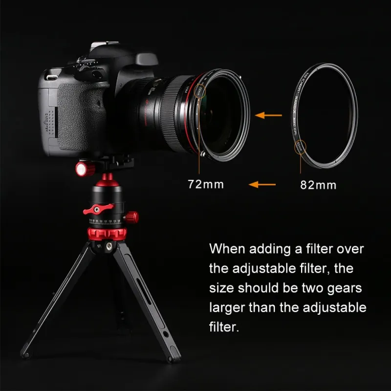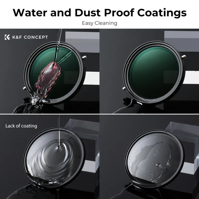 The versatile K&F Concept ND & CPL Filter 2-in-1 offers convenience by combining the functions of a CPL and variable ND filter, eliminating the need to switch between two filters. This innovation not only reduces the amount of light entering your lens but also effectively darkens skies and manages reflections simultaneously. You can bid farewell to the common issue of X cross appearing in your images, thanks to K&Fs cutting-edge technology, ensuring exceptional performance even with wide-angle lenses and variable ND filters. Crafted from professional optical glass, the filter features a multi-layer coating, allowing only 0.7% light transmittance while being waterproof and scratch-resistant, providing robust protection for your valuable lens. The aluminum alloy filter frames with serrated edges are designed for easy installation, and they feature convenient markings from Min to ND32 to help you precisely control the ND filters effect. Before ordering, please remember to check your cameras lens thread size, which is typically marked on the lens barrel or printed underneath the lens cap, and is preceded by the (diameter) symbol.