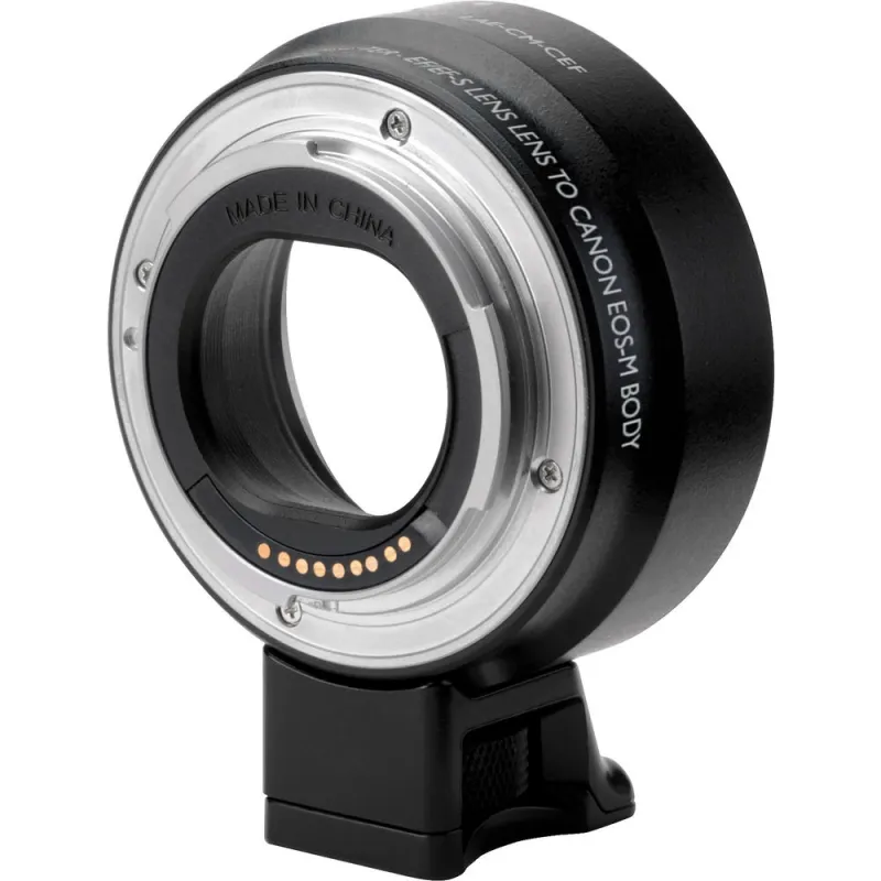 The Vello Auto Lens Adapter for Canon EF/EF-S Lenses to Canon EOS M Camera enables you to use your Canon EF and EF-S lenses with the Canon EOS M mirrorless digital camera system, which uses an EF-M lens mount. It is fully compatible with all lens functions, including image stabilization, electronic aperture control, and autofocus. A tripod adapter is provided for reducing strain on the camera when using heavier lenses. This mount can be removed for using longer telephoto lenses that feature their own tripod collar. And, included with the adapter are front and rear caps for storage.