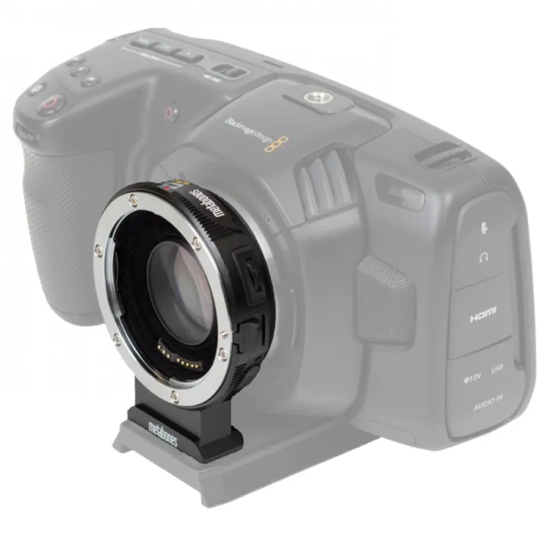 The BMPCC4K Speed Booster XL 0.64x reduces the crop factor of the BMPCC 4K camera from 2.02x to 1.29x and produces the largest aperture optics currently available, with a maximum output aperture of f/0.8.