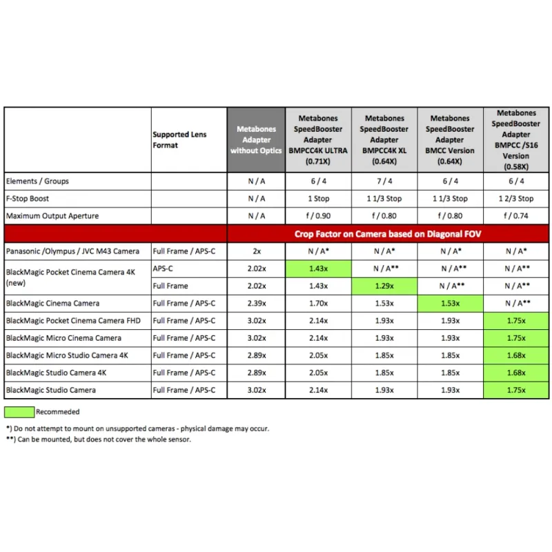 The BMPCC4K Speed Booster ULTRA 0.71x and XL 0.64x are similar to the standard M43 Speed Booster adapters (MB_SPNFG-m43-BM2 and MB_SPNFG-m43-BM3) but the optics have been re-designed to optimize for the filter stack thickness of 2.4mm found in Blackmagic cameras rather than the 4mm of a standard Micro Four Thirds.