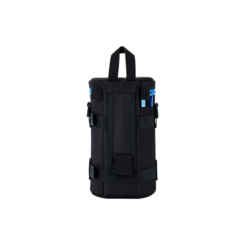 JJC Deluxe Lens Pouch is designed to carry a typical SLR lens. This pouch features heavy-duty polyester construction with a foam cushion interior. It provides great protection and shock absorption for your lens. Besides, its exterior material is water-resistant, which can protect your lens from rain and moisture. It has deep blue two way zipper with a mesh accessory pocket inside the lid. The two zipper sliders are designed with small loops, thus you can lock them together with a small lock for security. You can put the small accessory, such as lens cap or remote controller, into the inside pocket. Features 4 carrying options: 2 D-rings with a strap to be used as a shoulder strap, 2 webbed eyelet loops for a shoulder strap, rear double touch belt loop for use on waist belt and a grab handle on the top for convenience. In addition, the narrowed rear double touch belt loop also fits Lowepro belt. The deep blue zipper coordinate with the JJC logo, which makes the pouch fashionable. This series of lens pouches is available in 7 sizes to fit a wide variety of lenses.