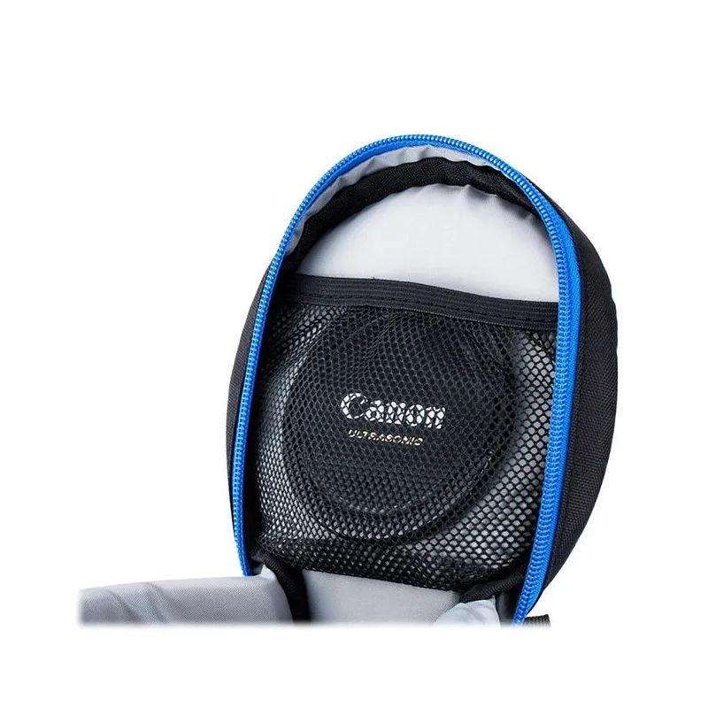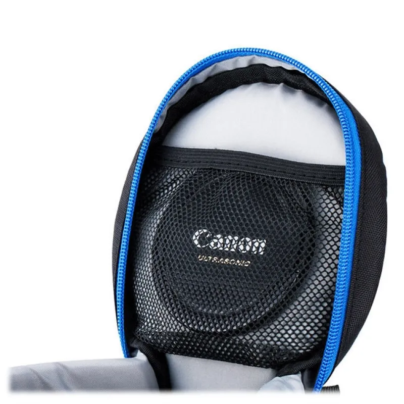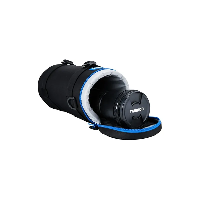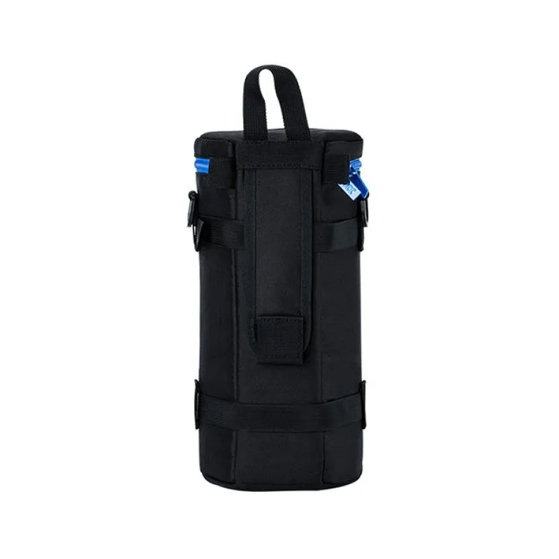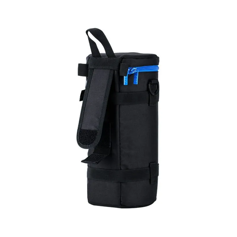 JJC Deluxe Lens Pouch is designed to carry a typical SLR lens. This pouch features heavy-duty polyester construction with a foam cushion interior. It provides great protection and shock absorption for your lens. Besides, its exterior material is water-resistant, which can protect your lens from rain and moisture. It has deep blue two way zipper with a mesh accessory pocket inside the lid. The two zipper sliders are designed with small loops, thus you can lock them together with a small lock for security. You can put the small accessory, such as lens cap or remote controller, into the inside pocket. Features 4 carrying options: 2 D-rings with a strap to be used as a shoulder strap, 2 webbed eyelet loops for a shoulder strap, rear double touch belt loop for use on waist belt and a grab handle on the top for convenience. In addition, the narrowed rear double touch belt loop also fits Lowepro belt. The deep blue zipper coordinate with the JJC logo, which makes the pouch fashionable. This series of lens pouches is available in 7 sizes to fit a wide variety of lenses.