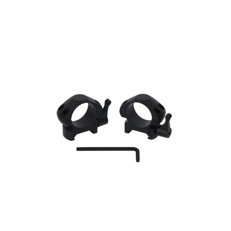 The Quick Release Mounting Rings 25.4 mm Low from Konus consists of two low mounting rings with which you can easily mount your rifle scope on a rifle. These rings are suitable for tubes with a thickness of 25.4 mm and are compatible with Weaver and Picatinny rails.