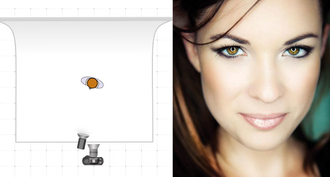Šādā veidā ar maigu gaismas avotu ir iespējams iegūt pievilcīgu sejas apgaismojumu. Mainot gaismas avota novietojumu, iespējams spēlēties ar ēnām pretējā sejas pusē.