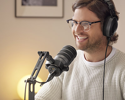 Podkasti ir kļuvuši ļoti populāri gan veidotāju, gan klausītāju vidū. Labam podkastam ir svarīgs gan labs saturs, gan audio tehnsikā kvalitāte, tāpēc ir vērts izvēlēties piemērotu mikrofonu. Podkastu mikrofoniem ir samērā liela kapsula, lai kvalitatīvi uztvertu skaņu, kā arī iebūvēti slāpētāji pret triekšņiem, kas rodas runājot.