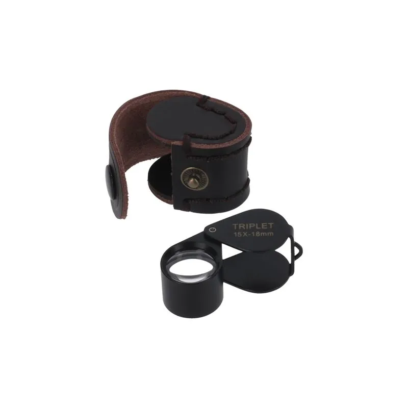 This triplet can simply be slid over your index finger. With the triplet you can study the finest essential details of the material you want to observe. The casing is very sturdy, made of metal. Small and easy to take with you in the supplied leather pouch.