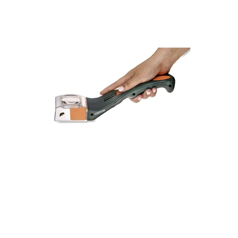 Ikvienam, kas vēlas pētīt mazus kukaiņus, Carson Bugview palielināmais stikls ir labākais rīks. Tam ir vienas rokas ķeršanas sistēma, lai jūs varētu noķert dzīvniekiem draudzīgā veidā, nepieskarasot tiem.