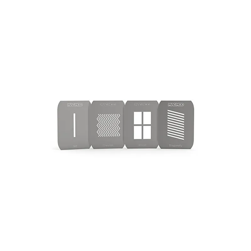The MagMod MagMask Standard Set is a set of four stainless Steel gobos designed for use with the Magmod MagBeam Fresnel Lens to project patterns of light onto your background or subject. The MagMask Standard kit is comprised of four gobos with four different patterns.