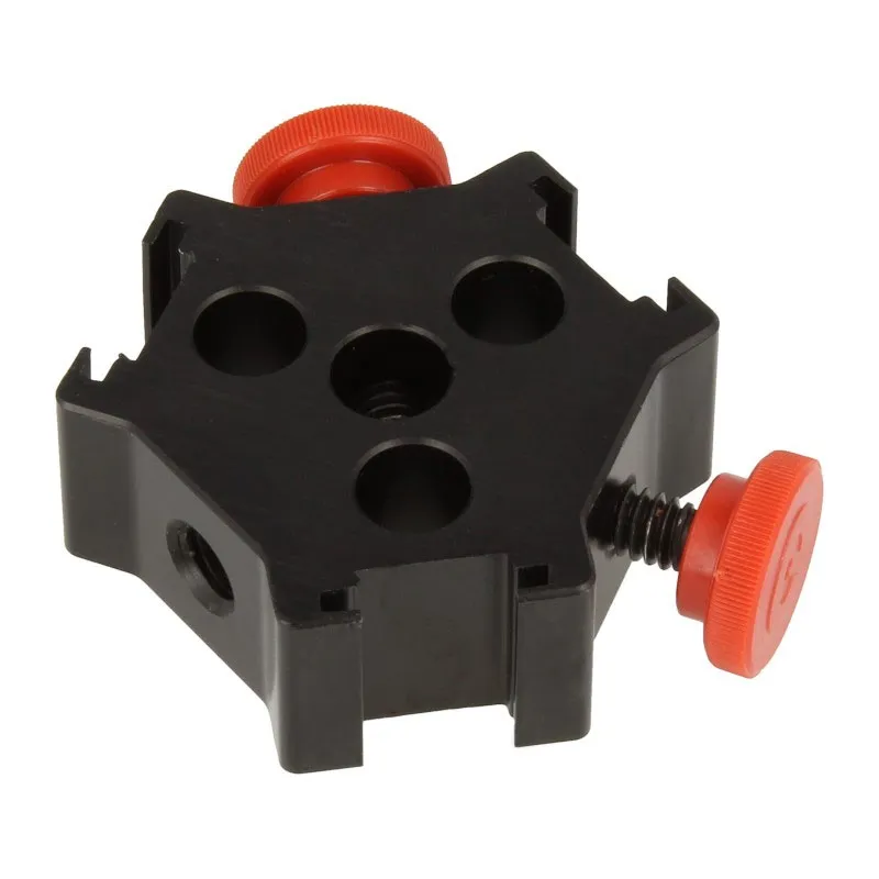 The Caruba Multi Flash Holder Aluminum is a heavy-duty but lightweight holder provided with three coldshoe connections for mounting three speedlites or other accessories. The holder is attachable to every stand with the two thumb screws. An 8mm screw thread is located at the bottom of the Caruba Multi Flash Holder.