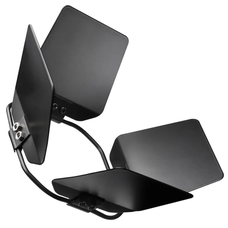 The Barndoors help you to limit the light of your studio flash on the motif or background so, that it only appears where you need it. This exclusive light former is especially suitable for product photography, in which smaller objects should be illuminated. The Barndoors are foldable in a 180° angle using hinges. The surface is black coated against reflections.