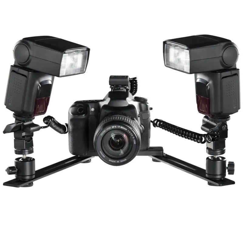 With the macro flash rail system by walimex macro shots will be a success that will wow you with the professional lighting. The flashes are simply mounted right and left of the camera on rails, which makes remote flashing possible. The flash devices can be individually adjusted in their position and fitted for your requirements. Due to the ball heads with cold shoe for the flash devices you can finely tune the direction of light.