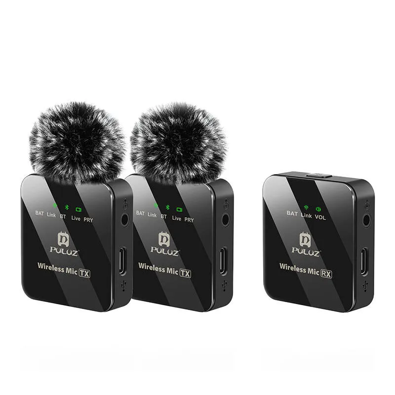 PULUZ 2 TX + 1 RX Wireless Lavalier Microphone ir ideāls risinājums vlogeriem, satura veidotājiem, žurnālistiem un ikvienam, kam nepieciešama uzticama un augstas kvalitātes audio ierakstīšanas iekārta. Tā uzlabotās funkcijas, lietošanas ērtums un daudzpusība padara to par neaizvietojamu rīku jebkura profesionāļa arsenālā.