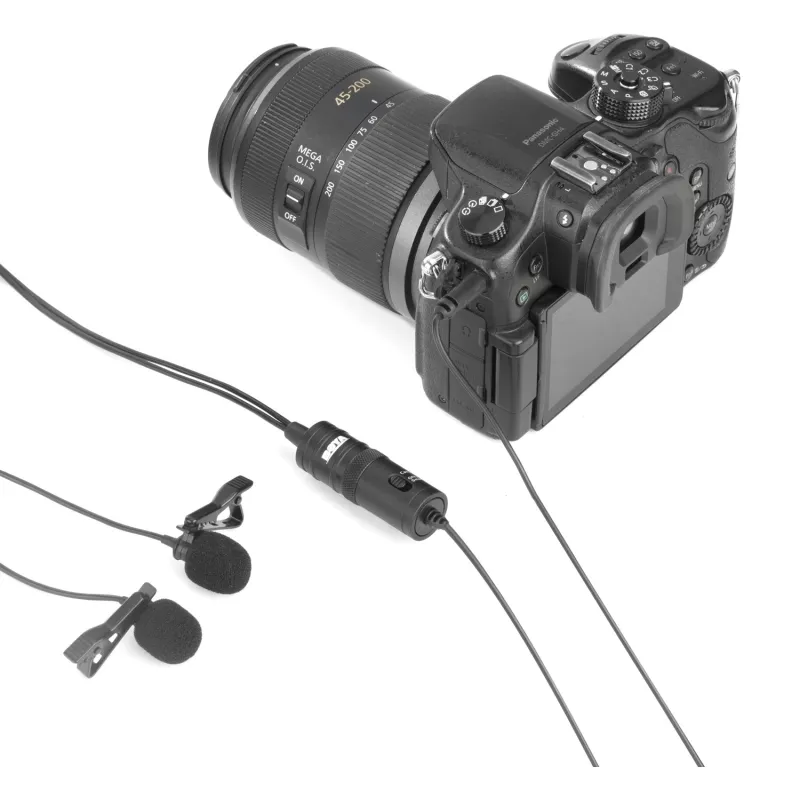 BY-M1DM no Boya ir divkāršs mikrofons, kas piemērots viedtālruņiem un (DSLR) kamerām. Pateicoties četru metru kabeļa garumam, jums ir pietiekama pārvietošanās brīvība. BY-M1DM īpašā iezīme ir tā, ka tā ir piemērota gan viedtālruņiem, gan kamerām. Ar īpašu pogu jūs varat pārslēgties starp šiem diviem režīmiem. Izmantojot BY-M1DM ar kameru, LR44 akumulators dara savu darbu; tas piešķir mikrofoniem to spēku. Iekļauts 3,5–6,3 mm adapteris, lai savienotu BY-M1DM ar profesionālākām kamerām.