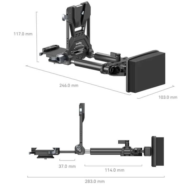 Montāžas sistēmas maksimālais izstiepšanas attālums ir 36,5 mm, kas piemērots dažāda izmēra kamerām. Stieņa bloķēšana un atbloķēšana ir ātra un bez instrumentiem, izmantojot pārslēdzamo slēdzi.